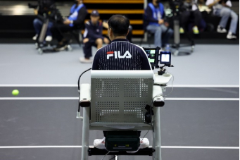 赛事现场的就业主谈主员、裁判和球童统伶仃着网球专科赛事服装