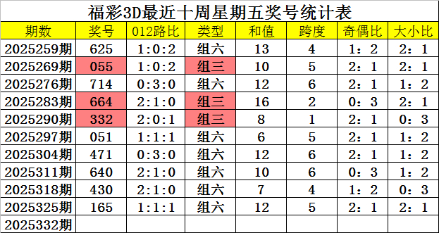 奖号类型分析:从近期周五开奖数据分析,组六近期热出,十周内出现7次,上周五为组六号码,组三出现3次,发达相对较冷,本周五瞻望陆续开出组六号码。