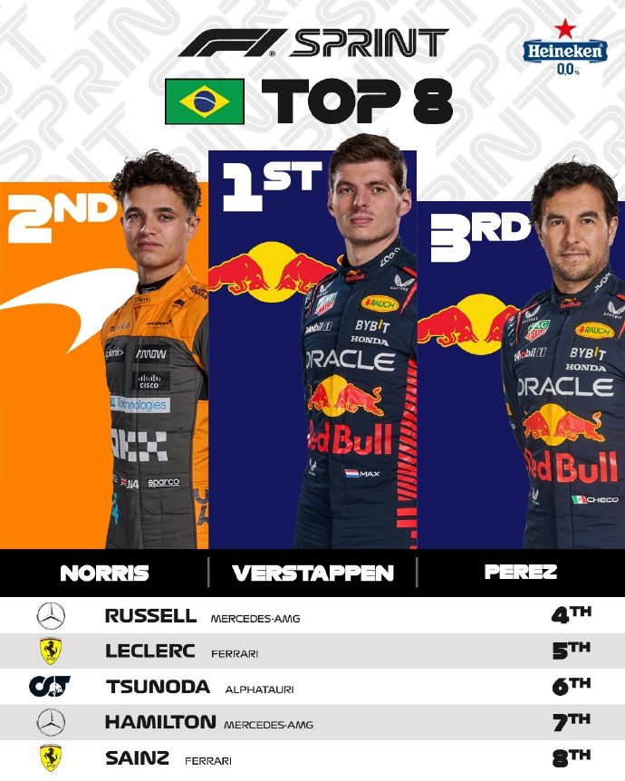 2023F1圣保罗大奖赛冲刺赛排名: