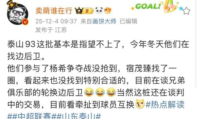 传说他们最近在边后卫位置上都快急疯了,先是追青岛西海岸的杨希,成果被东谈主半谈截胡。然后呢,确切开动打起“兄弟球队”的见识,想挖个瓜代球员来勉强。这一波操作看下来,那里像是王者之师,更像是到处捡漏、缝补缀补。有山东球迷平直破防了:“咱家这引援,何如越看越像在拼多多上淘低廉货?”