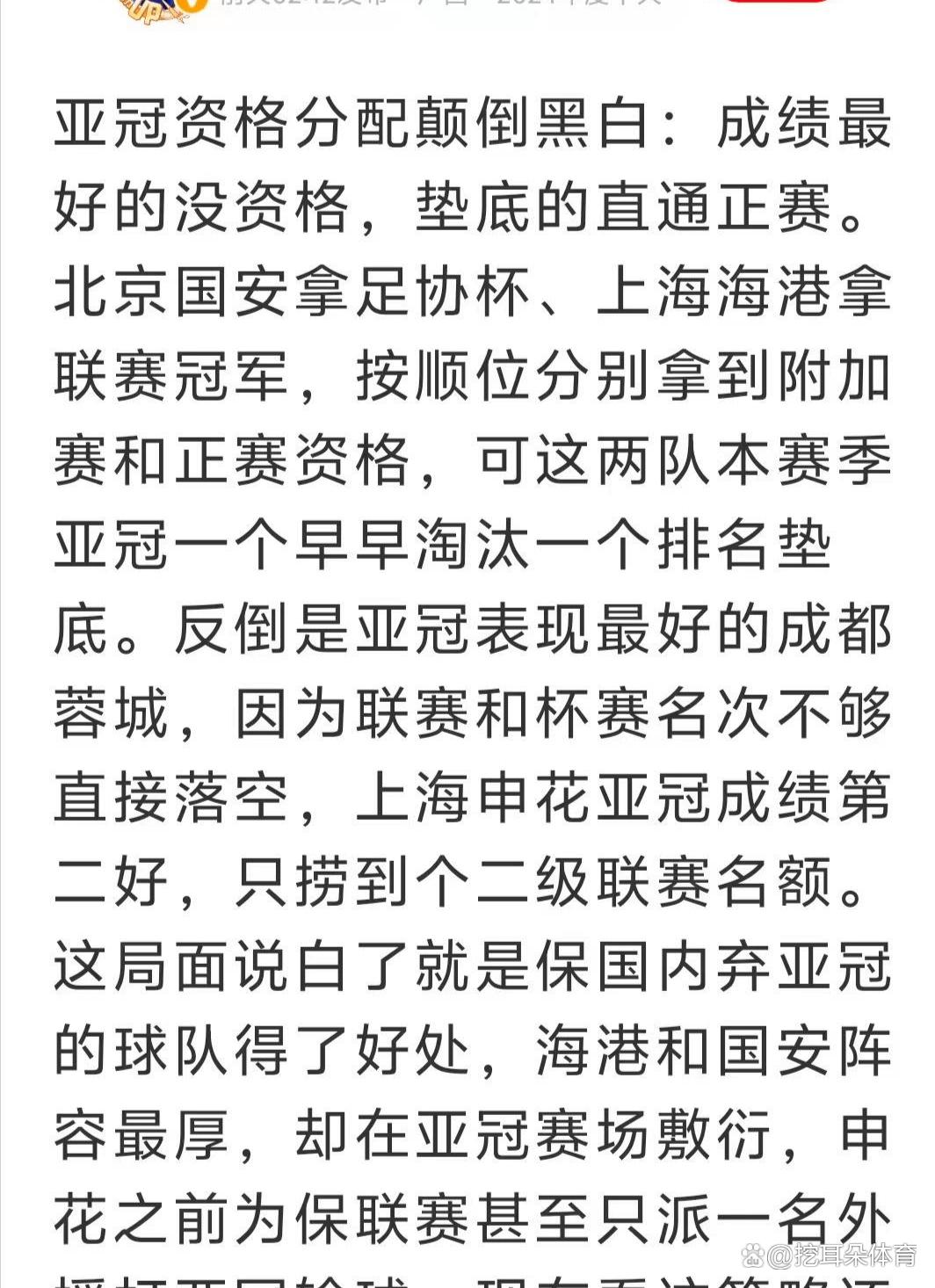哎,你说这事儿闹的,咱中超这亚冠限额,目下是越来越少了,从畴前气候的时间四个队能去,目下愣是缩水成了仨。最让东说念主看不懂的是,这仨限额怎样分呢?本年在亚冠踢得一塌微辞、小组垫底出局的上海海港和北京国安,嘿,东说念主家靠着国内拿的联赛冠军和足协杯冠军,来岁又能大摇大摆代表中超去踢亚冠了。